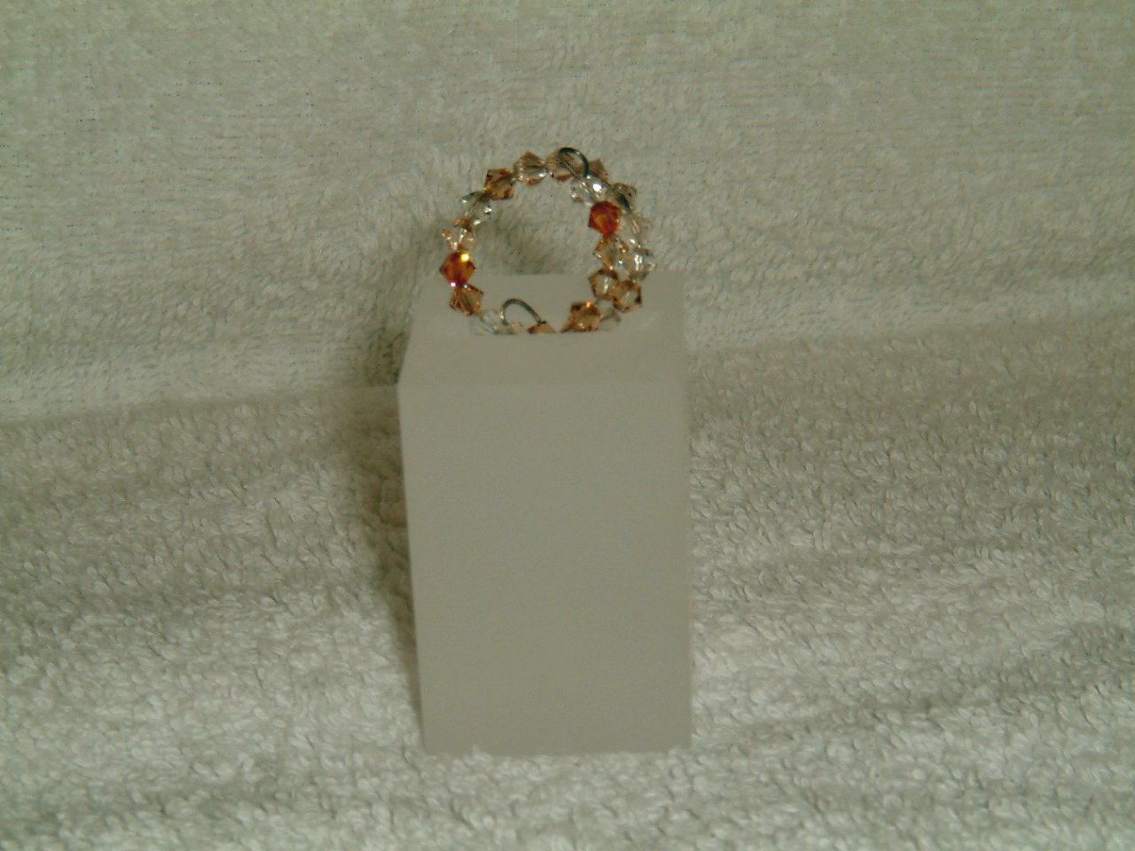 Champagne swarovski crystal bicones strung on memory wire. This ring will fit most ring sizes. The swarovski crystal bicones in this ring are 4 mm.